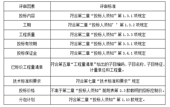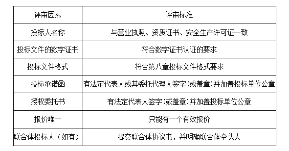 對(duì)招標(biāo)文件要求的工期、質(zhì)量、投標(biāo)保證金、履約擔(dān)保、投標(biāo)有效期、暫定價(jià)、不可競爭費(fèi)用等實(shí)質(zhì)性要求的響應(yīng)性進(jìn)行評(píng)審。