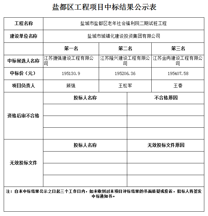 鹽城市鹽都區(qū)老年社會(huì)福利院二期試樁工程中標(biāo)結(jié)果公示
